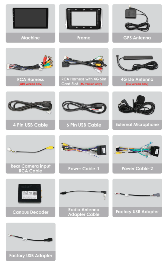 - Kábel na pripojenie parkovacej kamery(CINCH),