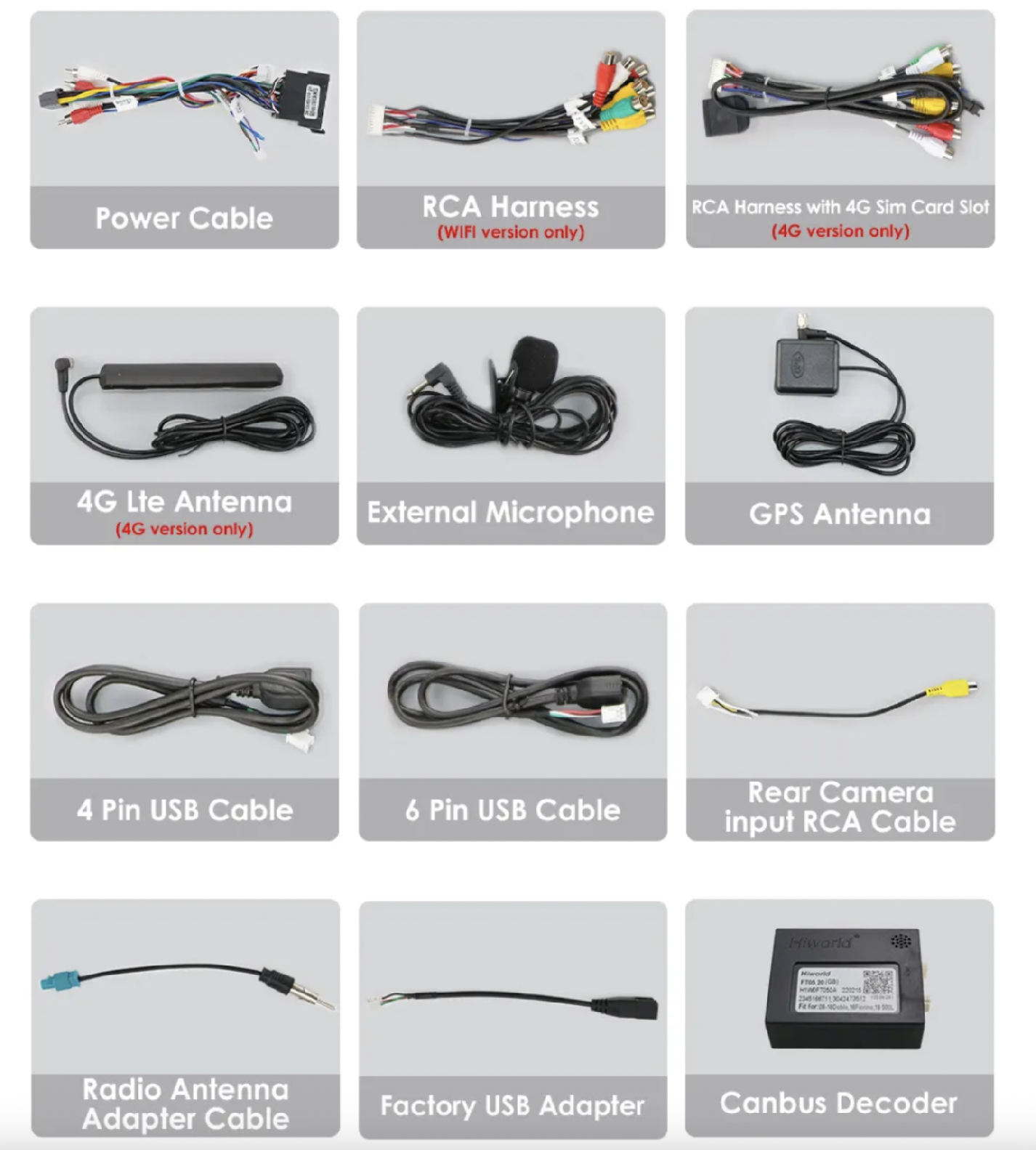 - Kábel na pripojenie parkovacej kamery,