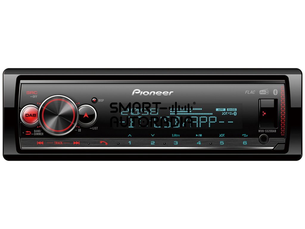 Autorádio Pioneer MVH-S520DAB je moderné 1-DIN bezmechanikové autorádio, ktoré ponúka USB a AUX vstup, integrovaný DAB+ tuner, zabudované Bluetooth, podporu Spotify, pokročilé DSP spracovanie zvuku, 3 páry RCA výstupov a tiež variabilné podsvietenie tlačidiel aj displeja pre dokonalé prispôsobenie interiéru vozidla.