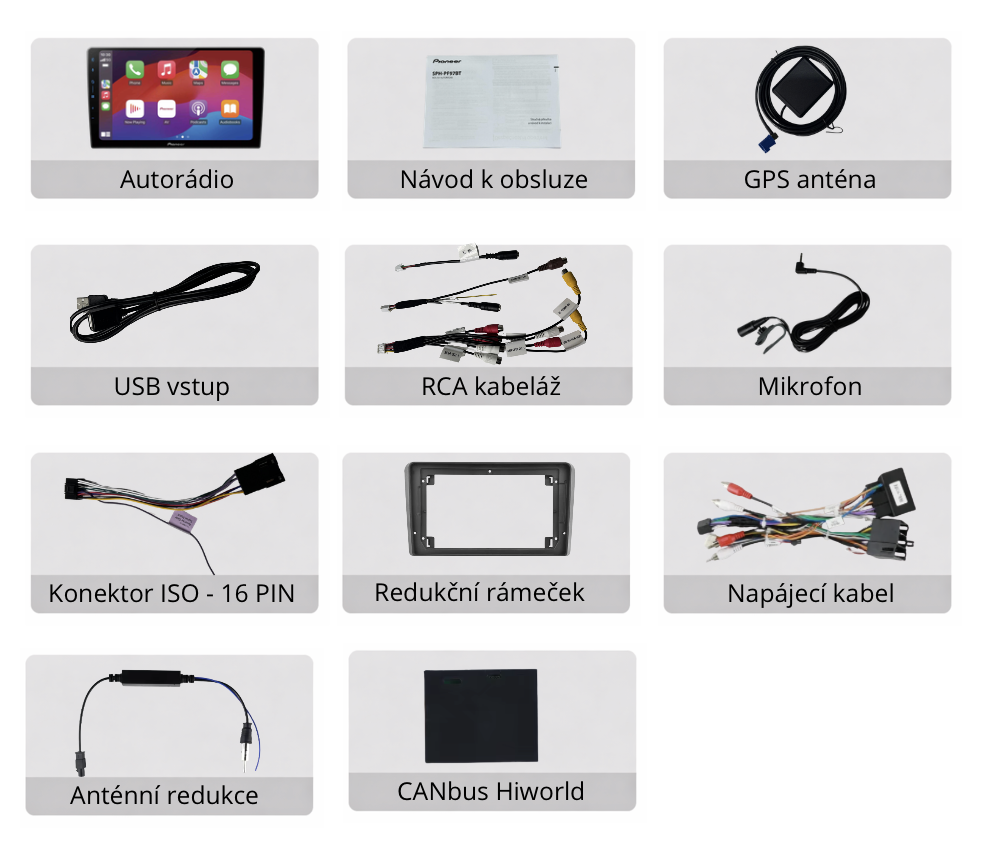 Autorádio Pioneer SPH-PF97BT s veľkým 9" dotykovým displejom ponúka modernú výbavu vrátane bezdrôtového Apple CarPlay a Android Auto, Bluetooth handsfree, WebLink 3.0 a kvalitného DSP zvukového procesora. Vďaka podpore cúvacej kamery, jednoduchému ovládaniu a konštrukcii PERFECT FIT, ktorá umožňuje inštaláciu do rôznych typov vozidiel, je ideálnou voľbou pre každého, kto chce komfort, bezpečnosť a špičkový zvuk v jednom zariadení.