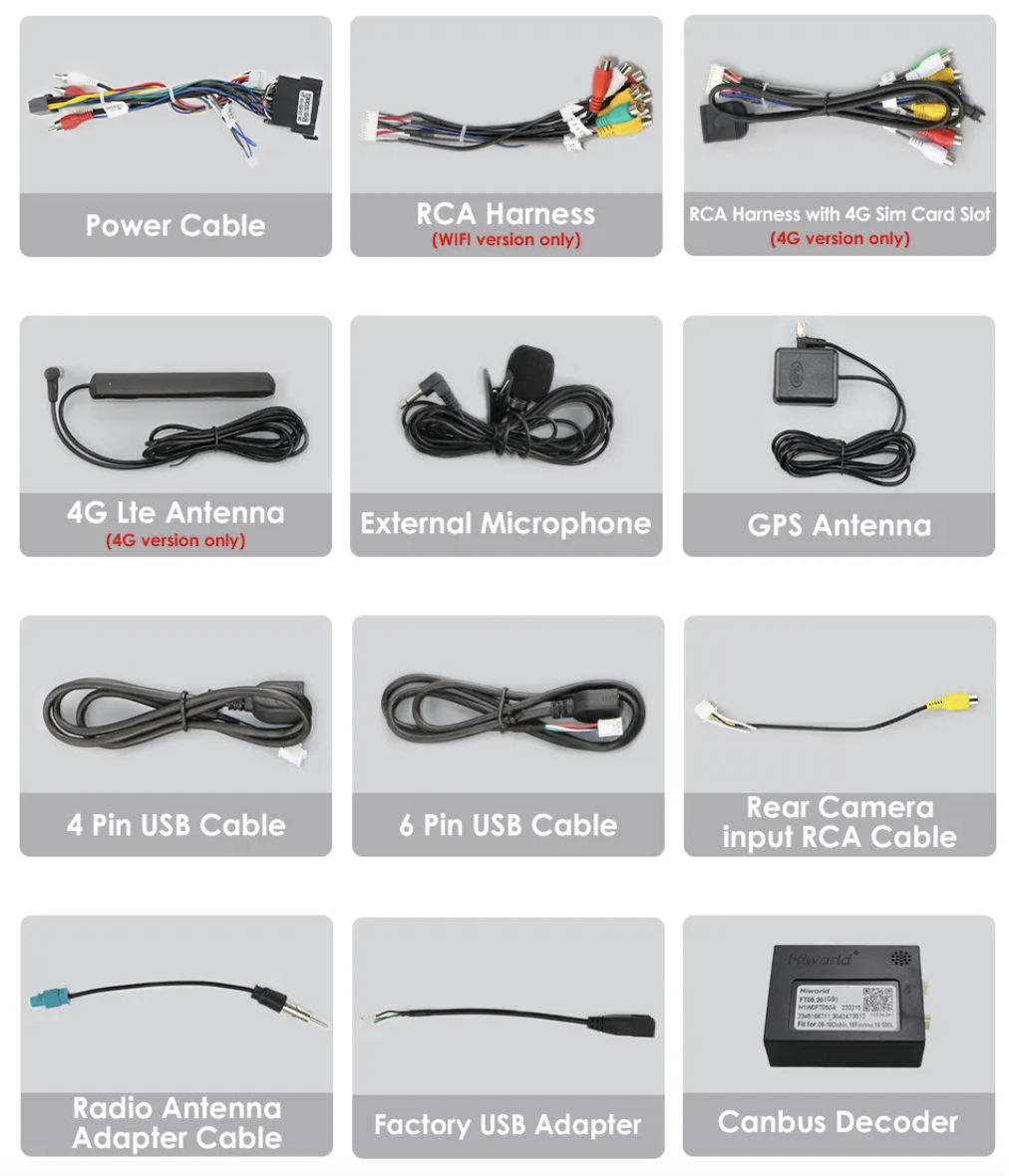 - Kábel na pripojenie parkovacej kamery,