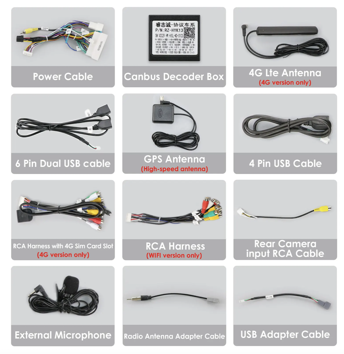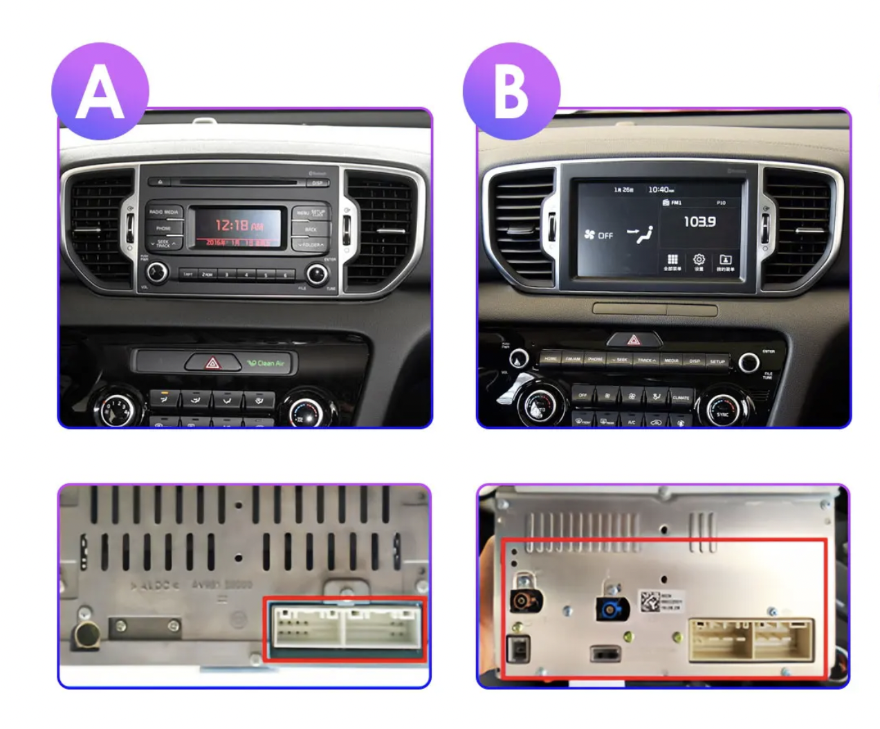 KXAKX59001B Autorádio 9" Android pre KIA Sportage 4 KX5 - napájecí kabel typ B