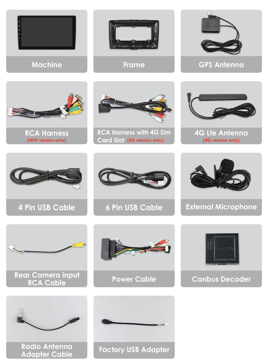 - Kábel na pripojenie parkovacej kamery (CINCH).