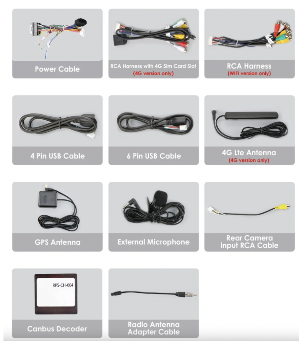 - Kábel pre pripojenie parkovacej kamery,