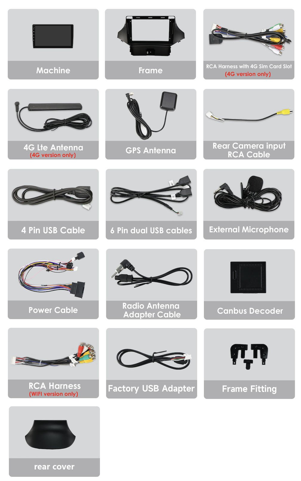 - Kábel pre pripojenie parkovacej kamery,