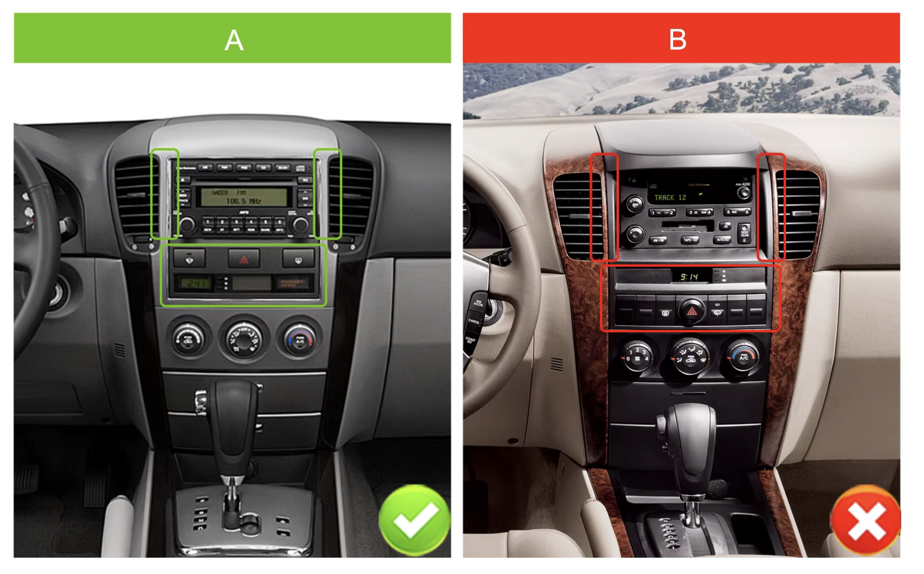 - Autorádio je vhodné na montáž iba do vozidiel s prístrojovou doskou typu A. Ak je vaše vozidlo vybavené prístrojovou doskou typu B, toto autorádio pre vaše vozidlo nie je vhodné.