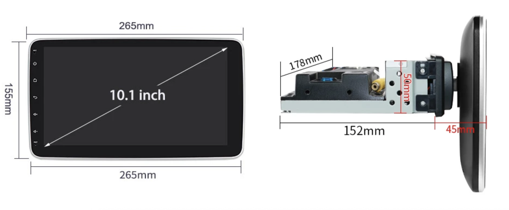 Štýlové 10,1" Android autorádio s 1DIN rozmerom a dotykovým displejom prináša systém Android 13, otočný 360° displej s vertikálnym posuvom a podsvietený bočný panel. Ponúka Wi-Fi, Bluetooth, GPS aj integrovanú navigáciu iGO Primo. Vybrané varianty podporujú aj 4G/LTE pripojenie vďaka slotu na SIM kartu. Bezdrôtové Apple CarPlay a AndroidAuto zabezpečujú pohodlné ovládanie telefónu priamo z displeja autorádia, rovnako ako bezdrôtové zrkadlenie obrazovky. Farebne podsvietený bočný panel dodáva zariadeniu moderný vzhľad. Autorádio umožňuje pripojenie parkovacej kamery s CINCH konektorom a podporuje formáty NSTC, PAL, CVBS, AHD720p a AHD1080p. K dispozícii je tiež možnosť pripojenia prednej DVR kamery na nahrávanie jazdy. Ideálna voľba pre bezpečnosť aj zábavu na cestách.